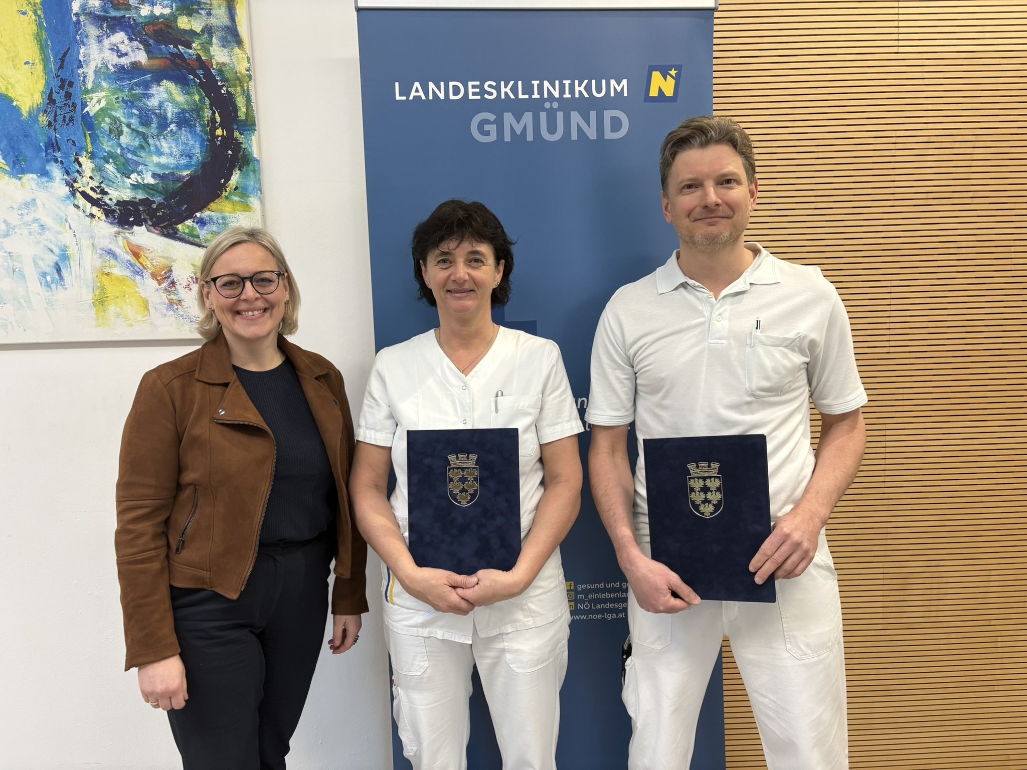 GMÜND. Die beiden Mitarbeitenden des Landesklinikums Gmünd Sandra Altrichter und Thomas Vogl absolvierten mit ausgezeichnetem Erfolg die Ausbildung zur Gipsassistenz.